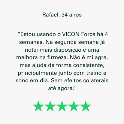 Você se sente com menos energia, um certo cansaço persistente ou uma queda no seu desempenho, tanto na rotina quanto na intimidade? A vida moderna pode cobrar um preço alto, mas você não precisa aceitar isso como norma. O VICON FORCE foi criado pensando no homem que busca mais: mais vitalidade, mais força e mais confiança para dominar cada desafio.