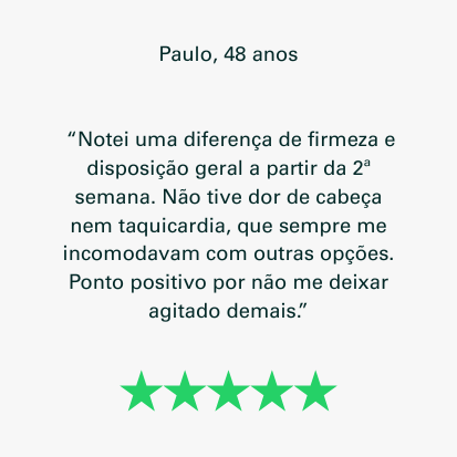 Os resultados podem variar, mas muitos usuários relatam sentir os primeiros benefícios de energia e bem-estar nas primeiras semanas, com resultados mais significativos após 2 meses de uso contínuo.