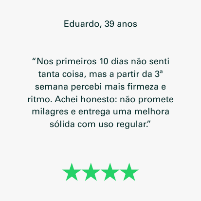 - Confiança Inabalável: Ao restaurar seus níveis de testosterona de forma natural, você sentirá um retorno na sua autoestima e na forma como você se apresenta ao mundo.